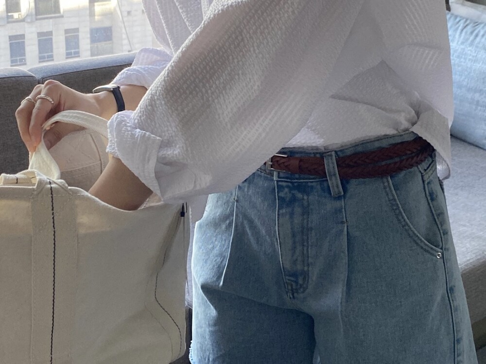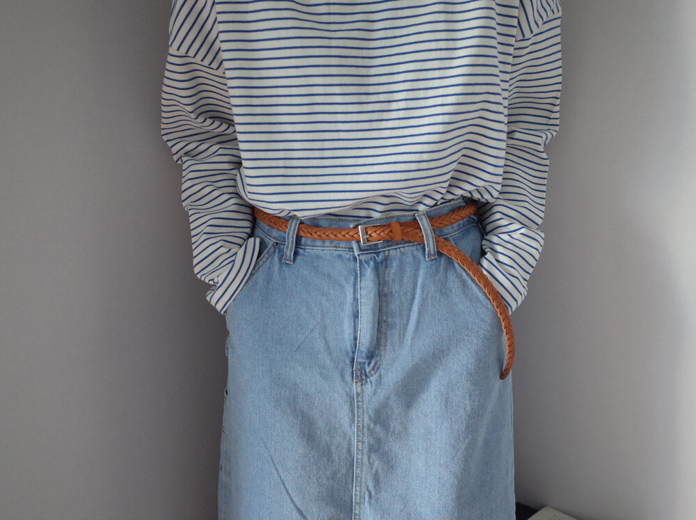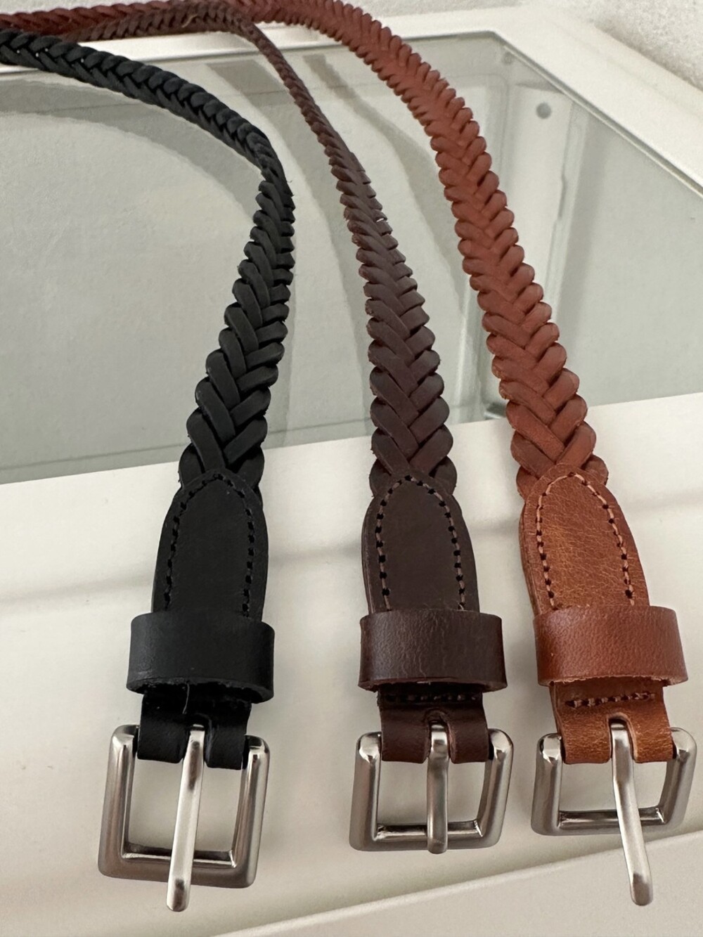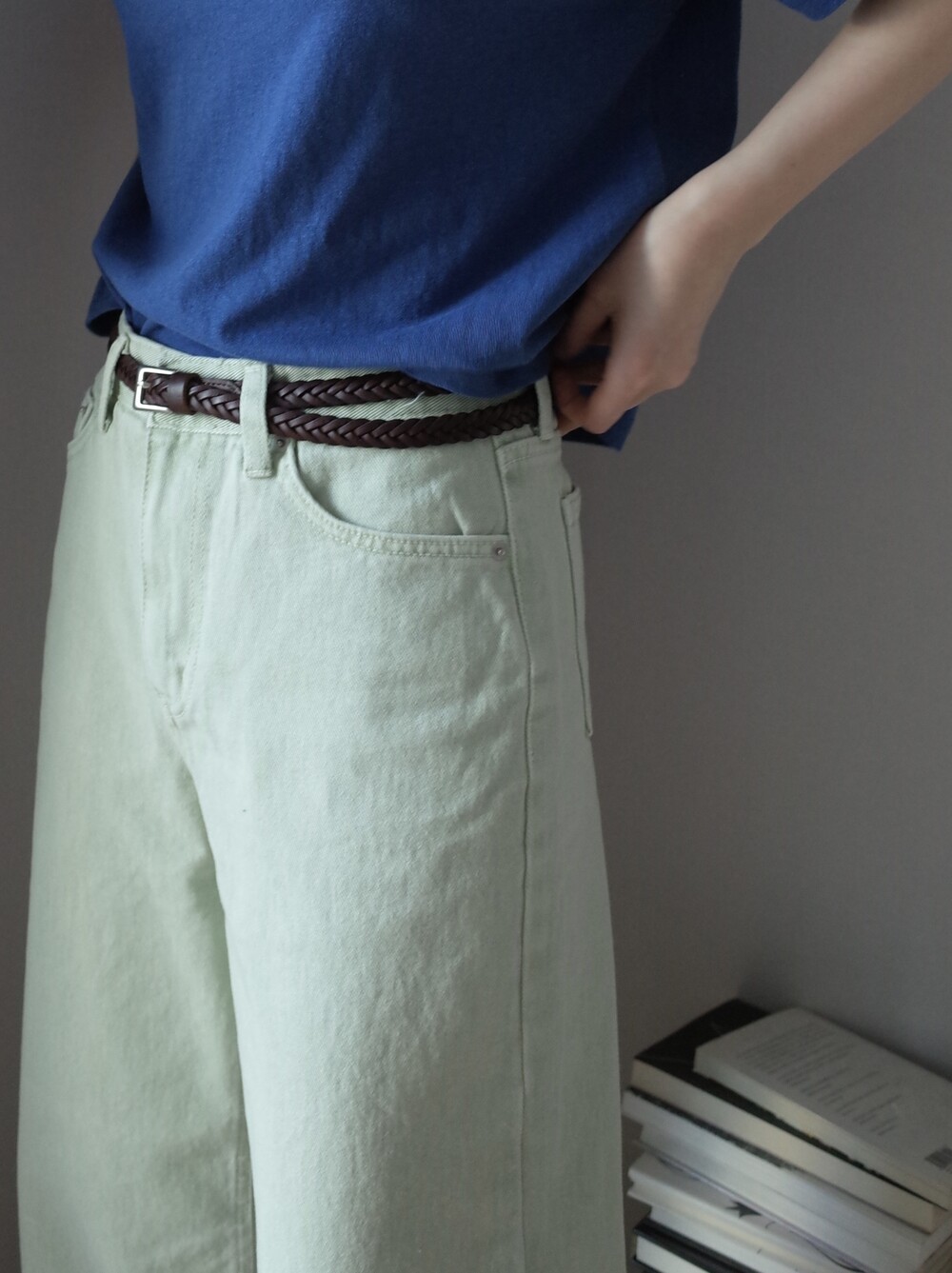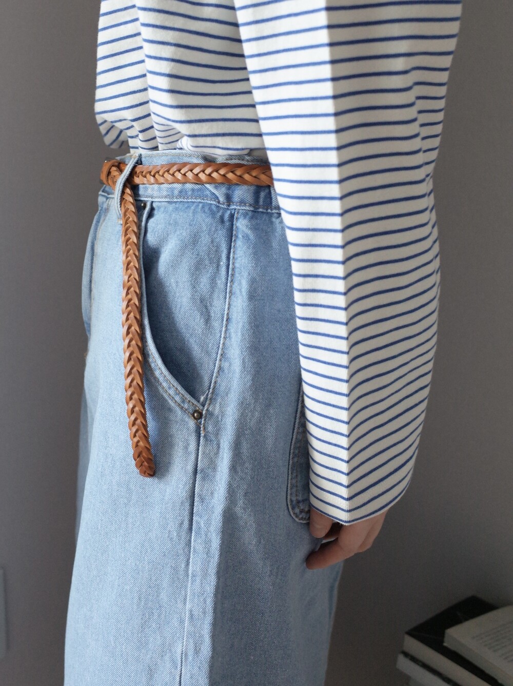 얇은 폭으로 다양하게 매치하기 좋은 위빙 디자인 벨트입니다.