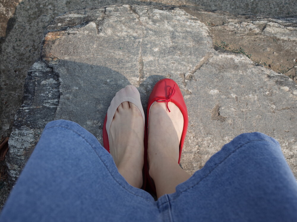 구두나 플랫슈즈에 신으면 겉에서 보았을때 보이지 않고 절대 벗겨지거나 하지 않습니다:)